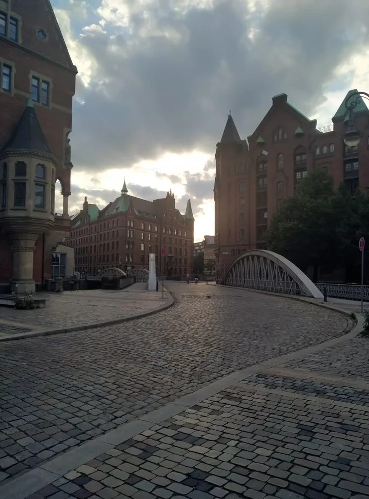Cihlový budovy v Speicherstadt ti připomínaj Automatický mlýny, dřevěný mosty nad silnicema a kanálama most, po kterým jsi přecházel v dětství železniční trať v Moravanech. Město neznáš, přesto jak kdybys byl doma.