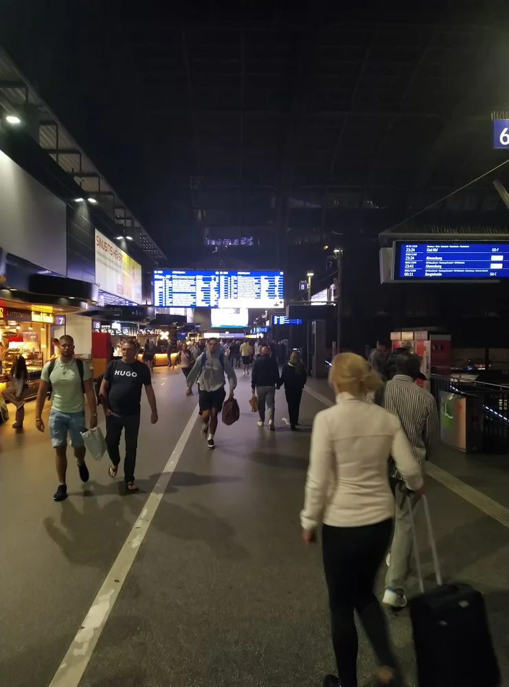 Expres přijíždí na stanici Berlin Gesundbrunnen s hodinovým zpožděním. Odtud jezdí snad co deset minut vlak na Hbf (hlavní).