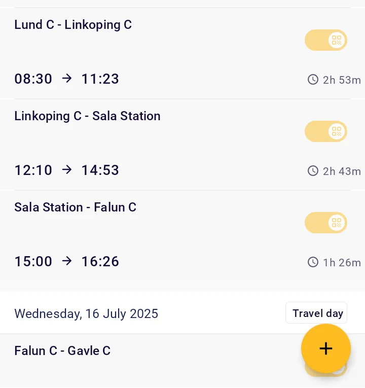 Čeká tě poslední přestup. Máš na něj sedm minut. Stihneš. Učinil jsi první pozorování: vlaky ve Švédsku jezdí na čas a regionální vlaky jsou hezčí než IC. Navíc v regionálních není povinná rezervace.
