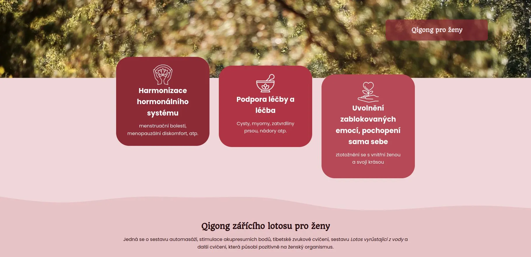 The website is built on high-quality professional photographs of the therapist, which she provided right at the beginning. These photographs are not just decoration - they are a key element that builds trust and shows authenticity. Important information is presented in clear cards that help visitors quickly navigate the service offerings. If they want to know more, additional details are provided in the sections below them.