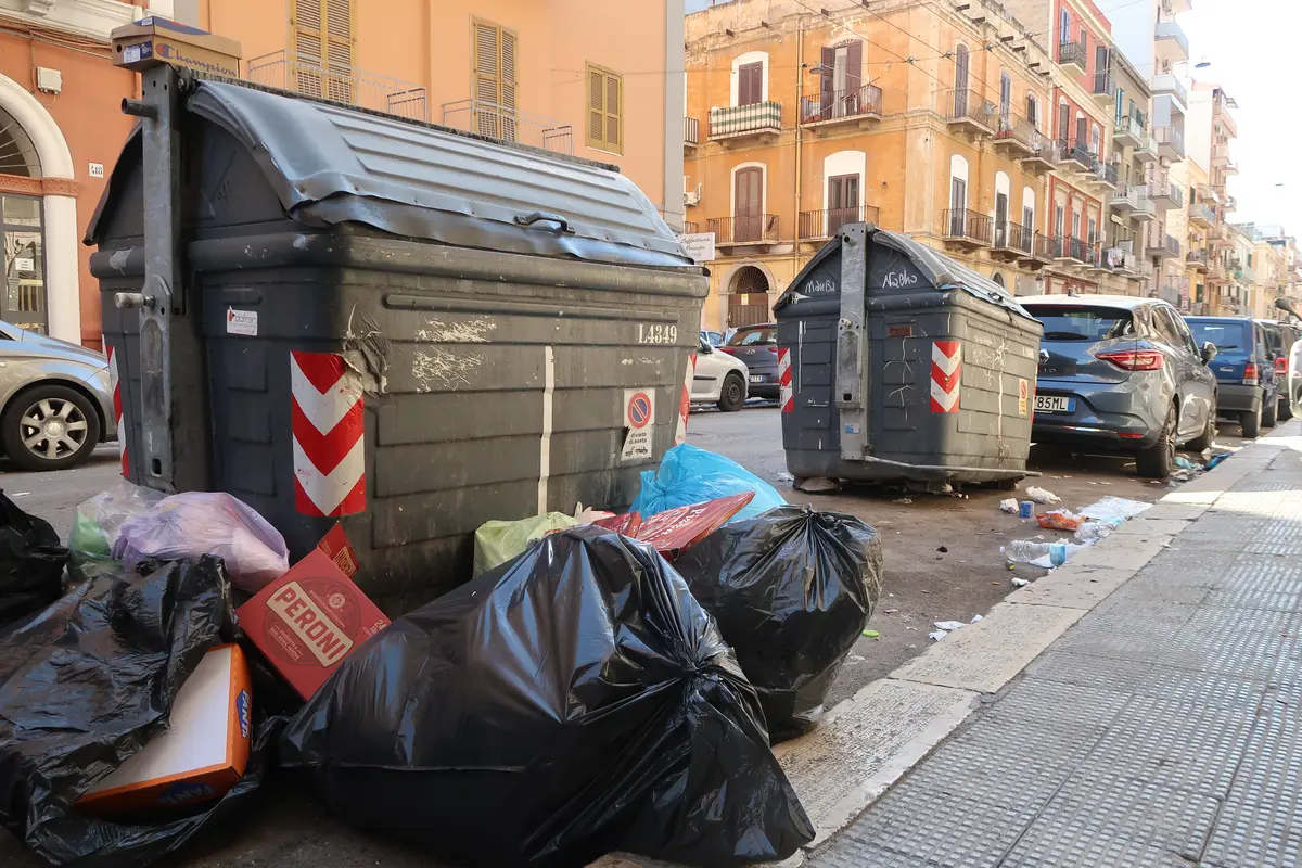 V Bari se odpad nesváží tak často jak by měl. Jen pár dní po průjezdu popelářů lidi ulice doslova zaplaví dalším odpadem. Kontejnery přetékají a kolem nich se objevují ostrůvky, ostrovy a nakonec hory odpadků.